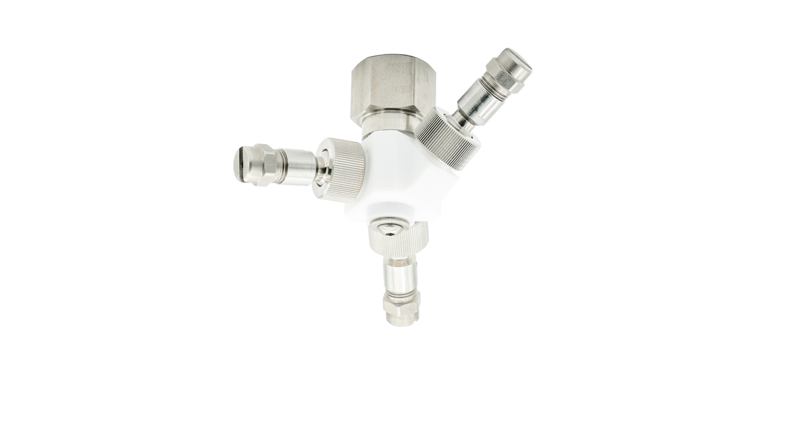 One nozzle sprays up at 45º, one down at 45º and one vertically