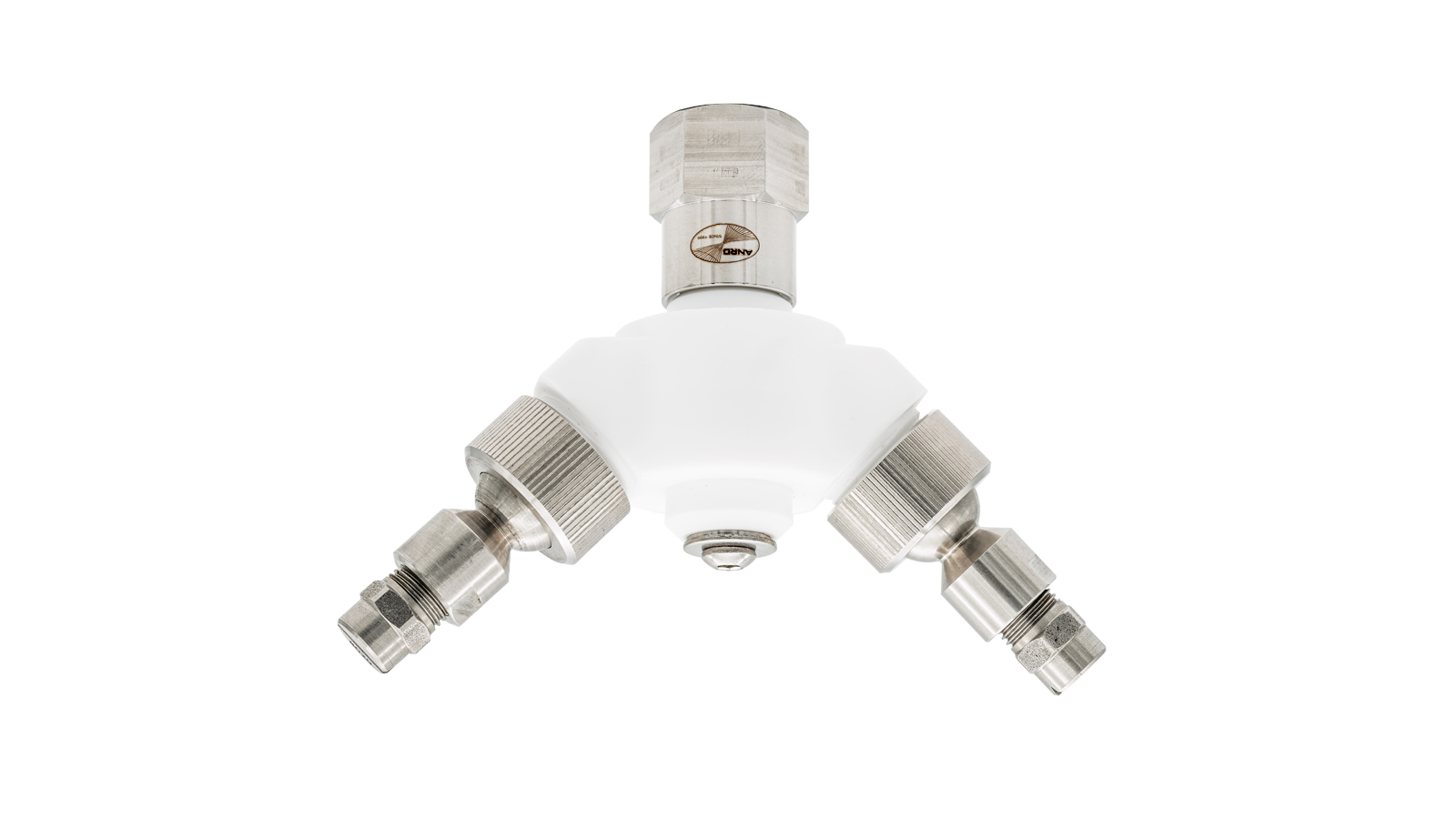 The GyraFlex Model V is optimized for 180º downward cleaning, delivering reliable performance for applications that require effective coverage of tank bottoms. With no internal parts or seals, the unit provides high reliability and low maintenance over extended use. It is equipped with two flat spray nozzles angled 45º downward, each adjustable by 90º, enabling flexible configuration to match specific cleaning requirements.